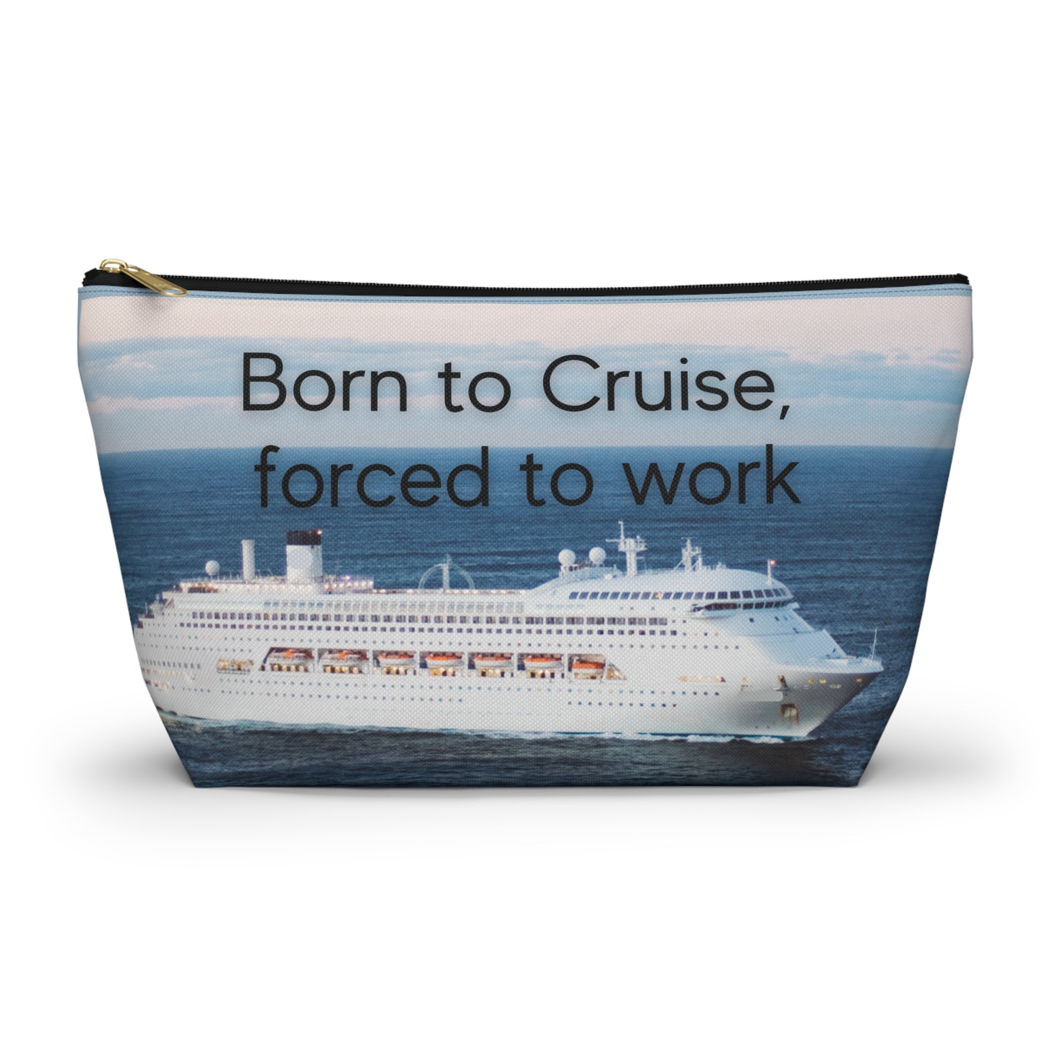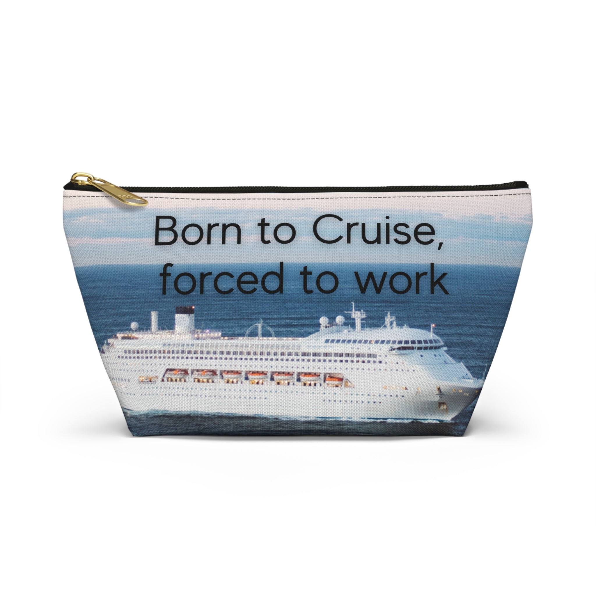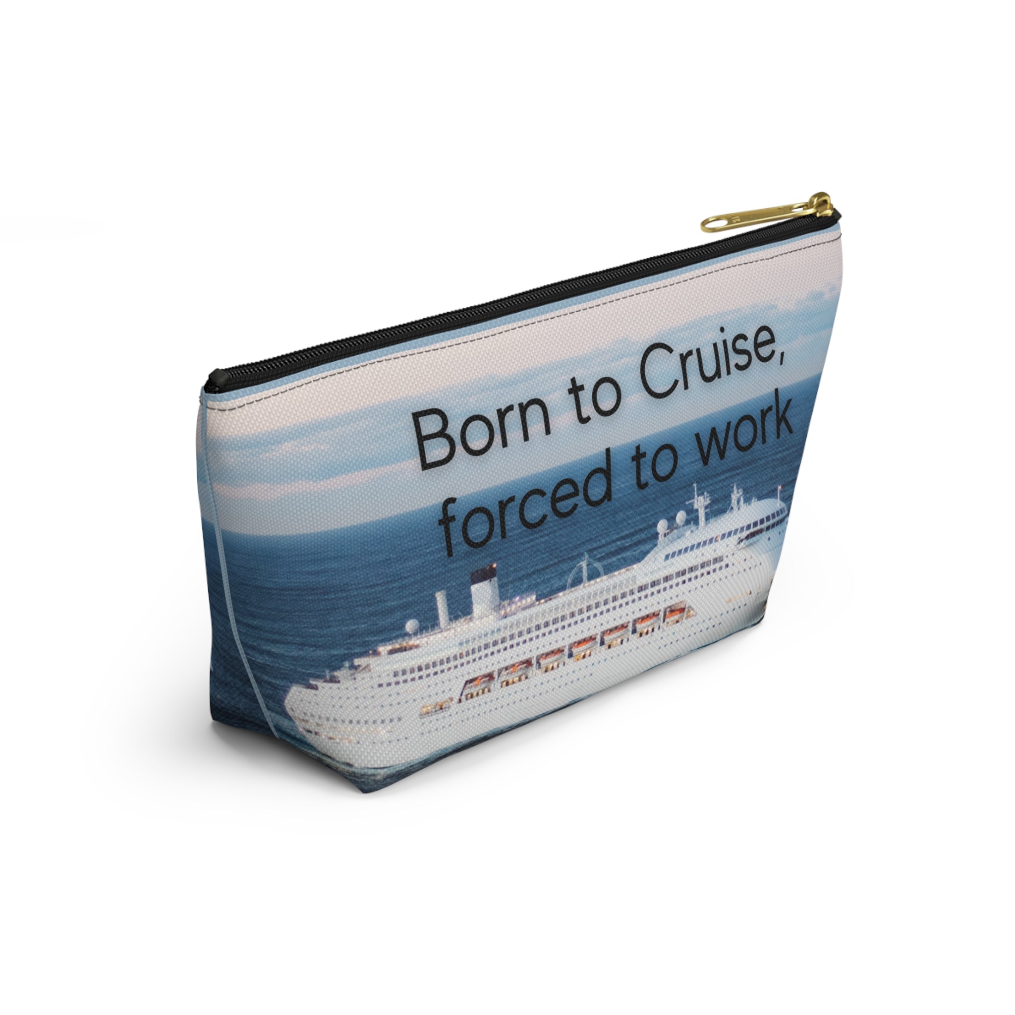 Stay organized and stylish on your next cruise adventure with this Born to Cruise, Forced to Work Travel Accessory Pouch! This versatile t-bottom pouch features a single pocket with a secure zipper enclosure, perfect for keeping your essentials safe and easily accessible while you sail the seas.