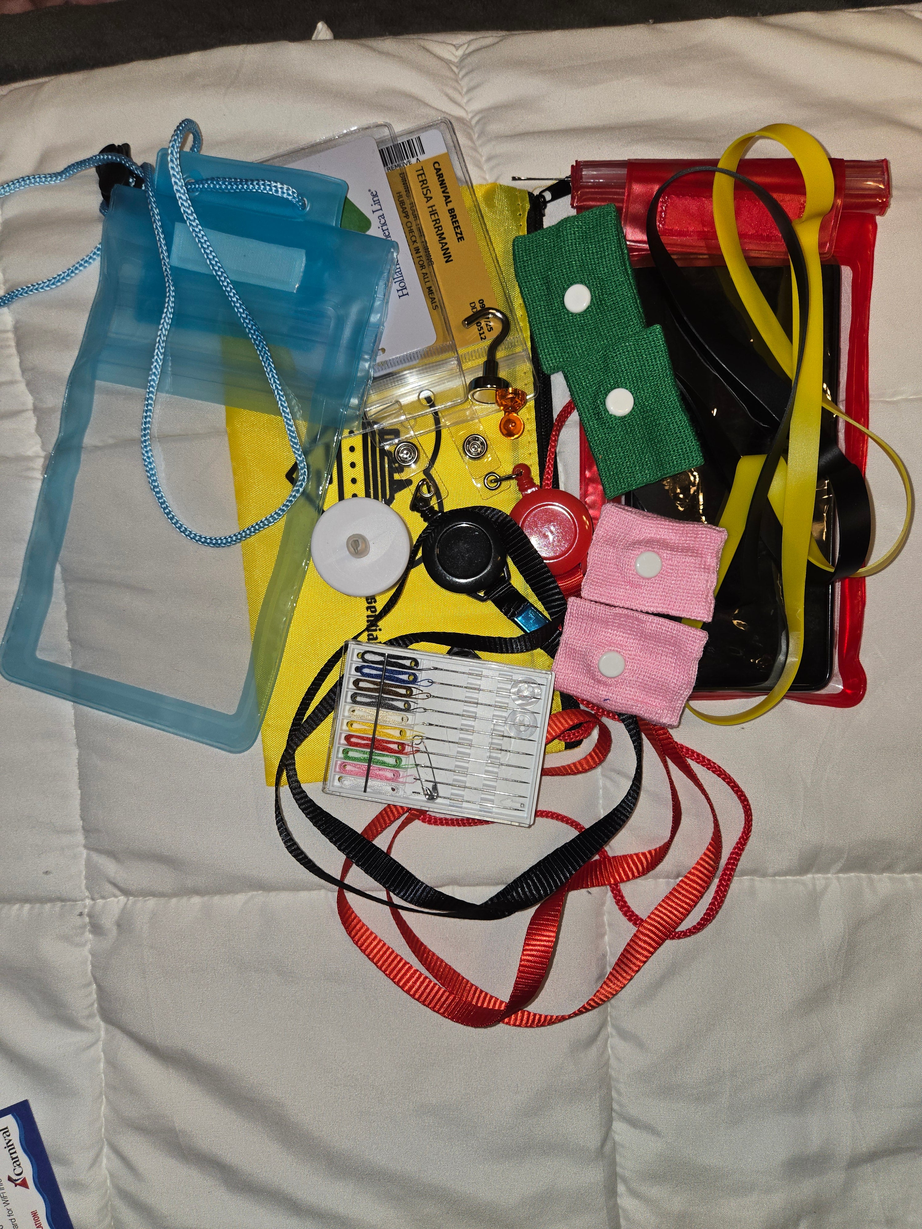 Enhance your cruise experience with our Cruise Essential Travel Pack! This small pouch is filled with essential items to ensure a smooth sailing adventure. Each pouch includes a lanyard for your keycard, a tealight for soft nighttime bathroom lighting, a waterproof phone pouch for on-deck activities, a luggage tag for easy identification, a towel band for beach days, a wall magnet for cabin organization, seasick bands for comfort, and a travel sewing kit for emergencies.