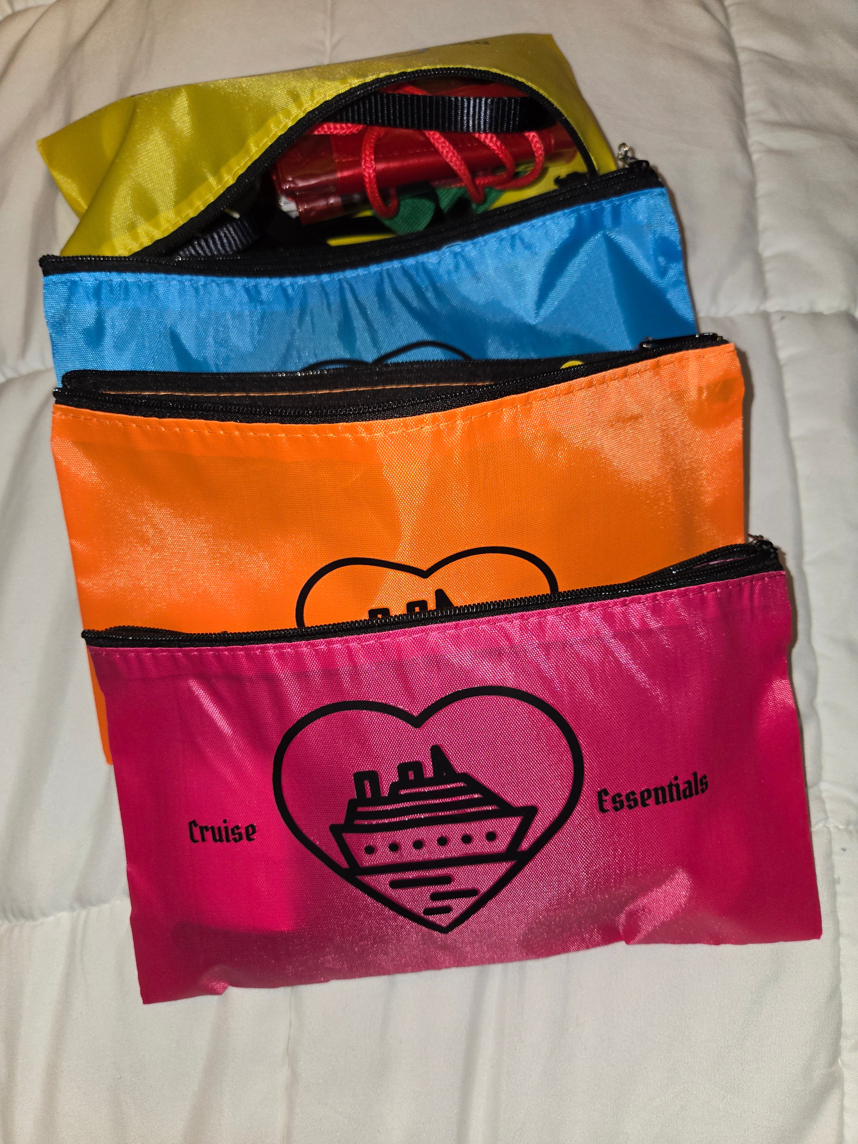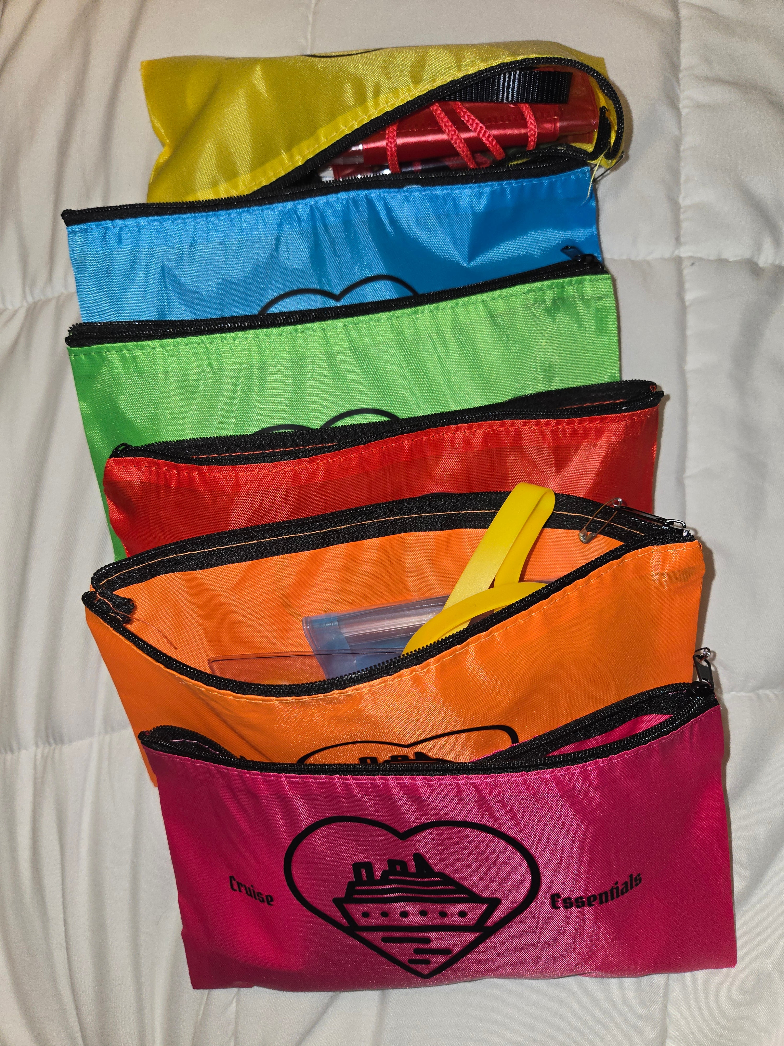 Whether you're a seasoned cruise enthusiast or setting sail for the first time, this thoughtful gift is perfect for keeping these items organized and accessible. Say goodbye to cluttered luggage or rummaging through drawers - our convenient pouch has you covered. Perfect for cruise lovers or those looking for a thoughtful gift for cruise enthusiasts, this Cruise Essential Travel Pack is a must-have for your nautical adventures. Colors vary, and each pouch even includes a safety pin for those unexpected moments. Bon voyage and smooth sailing ahead!