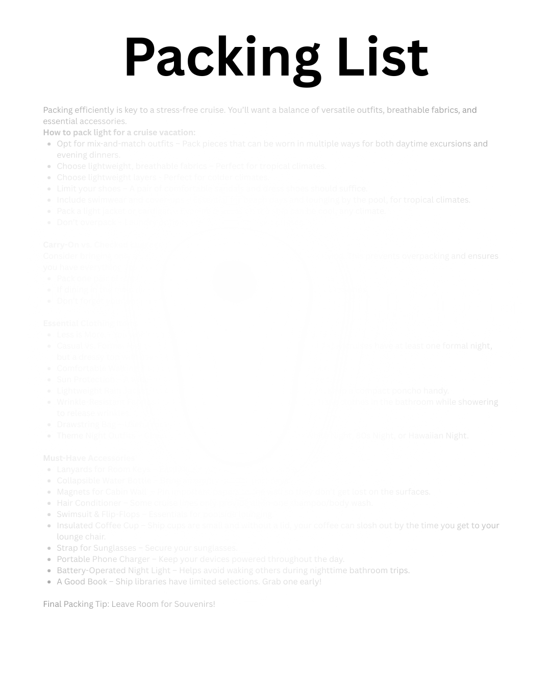 • A handy cruise budget planner to keep track of expenses from excursions to onboard extras