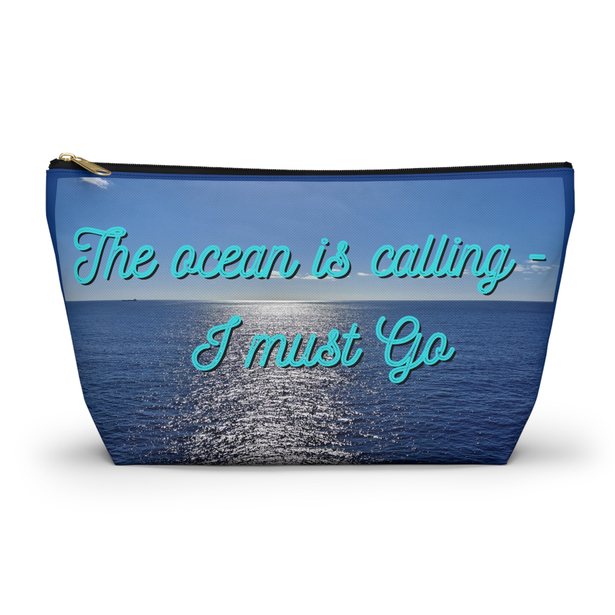 Stay organized and cruise in style with this The Ocean is Calling Travel Accessory Pouch. Made from durable 100% polyester with non-woven laminate inside, this t-bottom pouch comes in two sizes - 7 x 4 and 10 x 7. Perfect for storing watches, jewelry, sunglasses, or any small items, the zipper closure ensures your belongings stay secure while you enjoy your cruise.
